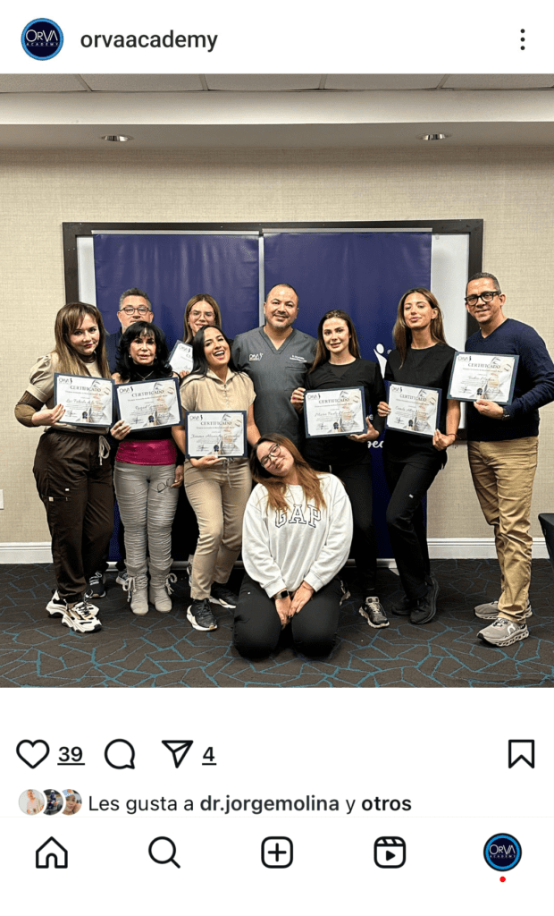 Muy agradecida con el Dr. ORTIZ POR compartir todo su conocimiento. Muy satisfecha con todo lo aprendido Orva Academy.